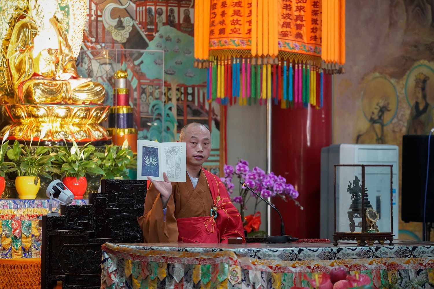 2021年7月12日下午,十一世班禅大师莅临成都文殊院参访,文殊院全体僧众以幢幡仪仗、钟鼓齐鸣的佛教最高礼仪表示热烈欢迎。
